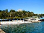 оборудованный собственный пляж длиной 150 м - в 250 м (10 мин ходьбы, обратно-15 мин, через подземный переход под авто- и железной дорогой); на пляже: аэрарий, навес, медпункт, душ, туалет, бар, дискотека, спасательная служба, причал, прогулочные лодки, катер, прокат водных велосипедов, скутеров, водные развлечения; тренажерный зал (KETTLER), сауна (6-8 чел.), волейбольная площадка, теннисный корт с синтетическим покрытием (есть инструктор); столовая (предусмотрено 15 видов диет, детское питание), кафе, бар, киноконцертный зал, библиотека, магазин, парикмахерская, косметический кабинет, парковка, камера хранения, организуются экскурсии, культурный досуг;