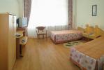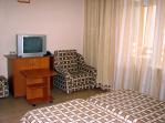 Корпус №1 1-но местный номер блочного типа 1х1 - 2 изолированные комнаты, рассчитанные на 1 человека каждая; общая площадь номера без учета санузла 9-10 кв. метров; в номере: ТВ, холодильник, телефон, душевая, санузел (допускается установка дополнительного спального места для ребенка при условии бронирования двух 1-местных номеров в блоке) 2-х местный номер с прихожей - площадь комнаты-12 кв. м; в номере: совмещенный санузел, фен, ТВ, холодильник, телефон, кондиционер. 2-х местный центральный номер с прихожей - общая площадь номера без учета санузла 18-20 кв. м; в номере: ванная комната с туалетом, фен, ТВ, холодильник, телефон, сплит-система. 2-х комнатный 2-местный люкс - общая площадь номера без учета санузла 34,5 кв. м; в номере: прихожая, гостинная с диваном, спальня, ванная комната, туалет, биде, лоджия, ТВ, холодильник, телефон, сейф, сплит-система Корпус №2 1-местный номер с прихожей - общая площадь номера без учета санузла 14,5 кв. м; в номере: ванная комната с туалетом, фен, ТВ холодильник, телефон, сплит-система, встроенный сейф; 2-х местный с прихожей (вид на море) - общая площадь номера без учета санузла 20-24 кв. м; в номере: ванная и туалетная комнаты, фен, лоджия, телевизор, холодильник, телефон, сплит-система, встроенный сейф; 2-х комнатный 2-х местный центральный люкс - общая площадь номера без учета санузла 36 кв. м; в номере: прихожая, гостиная, спальня, 2 лоджии, ванная комната с туалетом, фен, ТВ холодильник, телефон, сплит-система, встроенный сейф; 2-х местный угловой люкс - общая площадь номера без учета санузла 57 кв. м; в номере: прихожая, гостиная, спальня, 2 больших лоджии, ванная и туалетная комнаты, фен, ТВ в каждой комнате, холодильник, телефон, сплит-система, встроенный сейф.